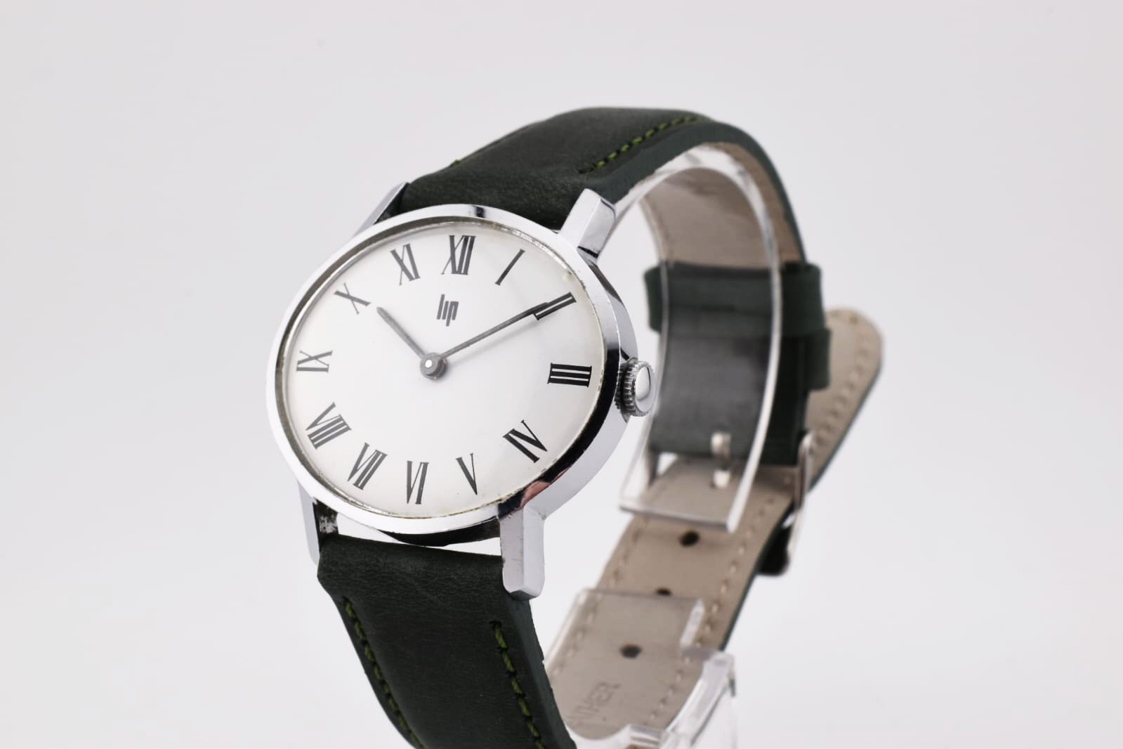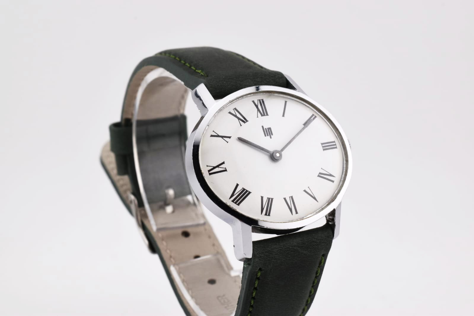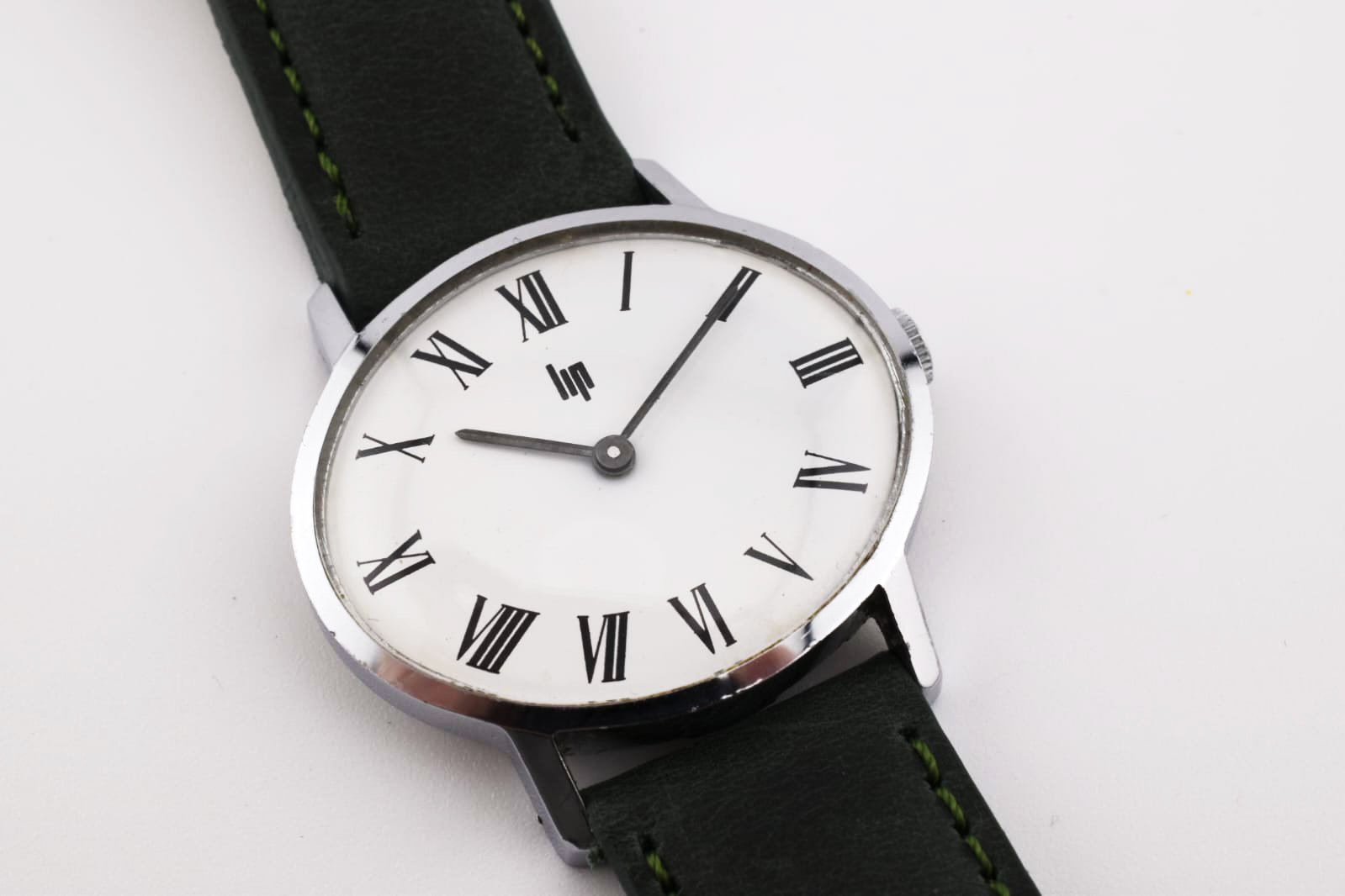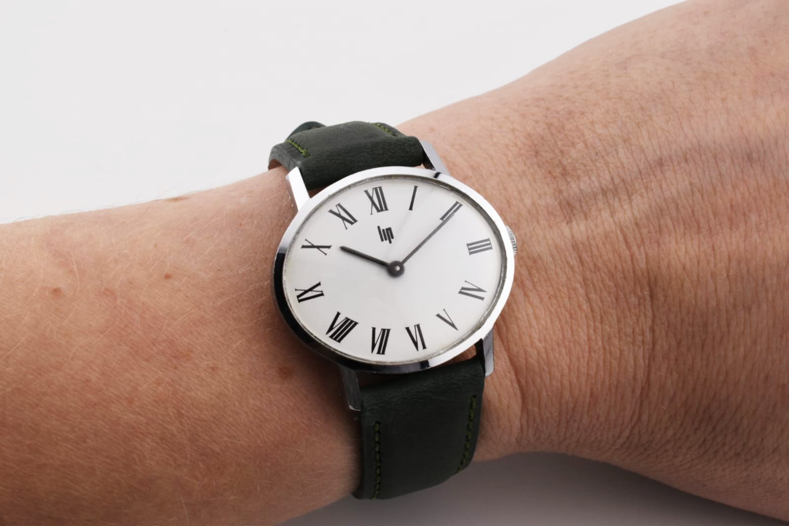 Son cadran blanc épuré s’accorde parfaitement avec un bracelet en cuir vert forêt, apportant une touche originale tout en restant élégante.